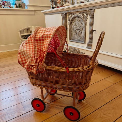 Dukkevogn, Retro fletdukkevogn, Den klassiske fra 70'erne. Rød flet dukkevogn.