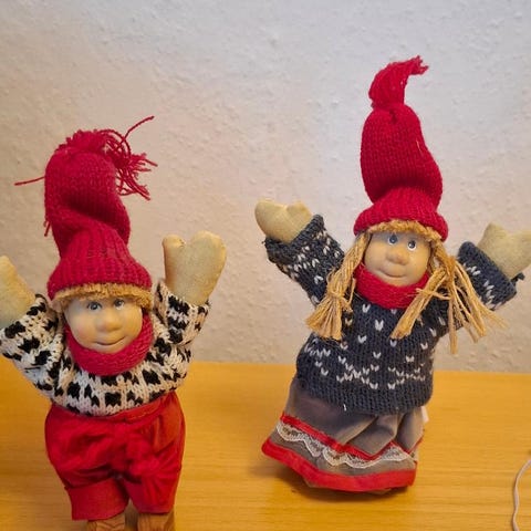 Sælger flot nisse ægtepar som sidder på en Cocio chokolademælk flaske.