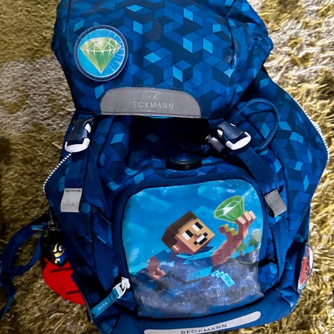 Skoletaske, Beckmann, Minecraft skoletaske, idrætstaske, penalhus, regnslag. Du klikkere mangler tap, men kan lukkes og lys er defekt