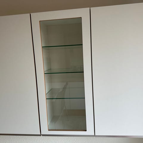 Skabet er forberedt til hylder og der medfølger en hylde.