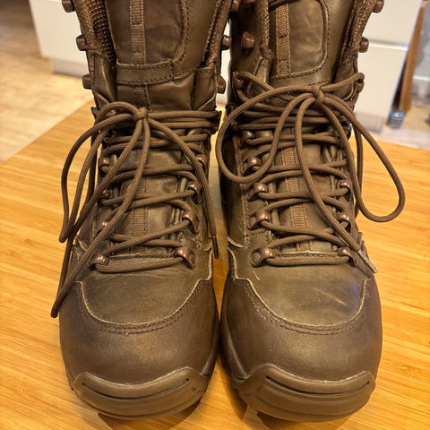 Militær, Us jungle boots. Her sælges 1 sæt Us army jungle støvler i str 42. De er nye og ubrugte og skal gås godt til. De er kun prøvet på og gået en tur i haven. De er hamrende fede og med den rette vedligeholdeldse er der støvler i mange år frem. Der er anti spike i bunden og sålen er anti mud designet.