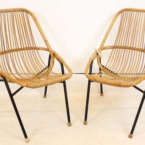 Retro stol, Gammelsvenskt bambu stoler med kunstig læder sæd