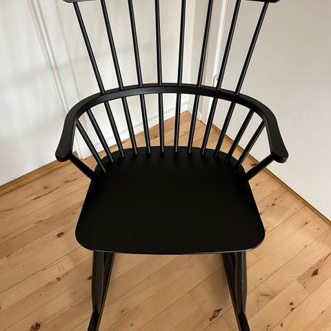 Den klassiske gyngestol er designet af Børge Mogensen og fremstår enkel i sit udtryk. Den er god at sidde i. Stolen måler cirka H: 90 cm, B: 60 cm, D: 55 cm.