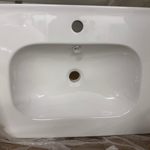 Ny vask, Helt ny håndvask til dobbelt armatur. Nypris 4000. Sælges til under halv pris. Næsten identisk med den på billedet. Skal afhentes. Vil ikk bøvle med forsendelse