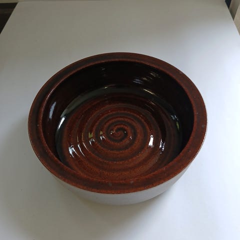God stand, skålen har en fin klang. Overfladiske ridser på inderside fra brug og lidt/flade glasur-afslag på bund, nok fra produktionen.