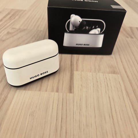 trådløse hovedtelefoner, Andet mærke, HUGO BOSS Gear Matrix Earbuds, Perfekt, HUGO BOSS bluetooth earbuds med Qi-certificeret etui som giver mulighed for trådløs opladning.