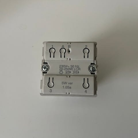 Lysdæmperen indeholder både sender og modtager. Tangenter kan aktiveres i begge sider. For at få adgang til programmeringsknapperne og lysdiode skal øverste tangenter afmonteres. Lysdæmperen skal monteres i dåse eller på underlag. Der med leveres 1 tænd/sluk tangent, 2 op/ned tangenter samt 1 dækbjælke. Lysdæmperen er universal og kan dæmpe glødelamper og både jernkerne-og elektroniske transformere, dog ikke samtidig.