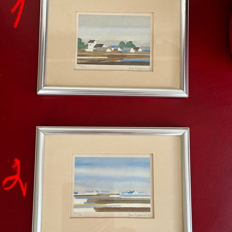 Akvarel, Jens Rosenkvist, 2 billeder af Jens Rosenkvist, det ene er nummereret 109/050 og tænker det er et litografi, den anden er ikke nummereret - måske akvarel?