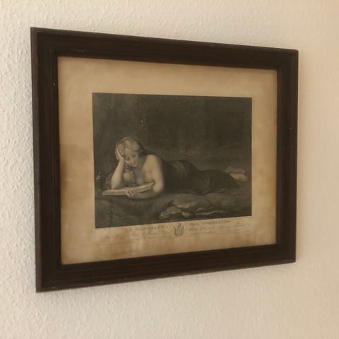 Kort / plakat i vintage, Rafaello , motiv: Madonna, b: 14 h: 19, Fint lille Madonna billede i vintage / retro guldramme.