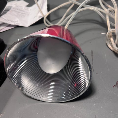 Anden loftslampe, Phillip Stark, Der mangler de små bøjler den hæftes sammen med. Mål: 130x21cm