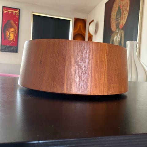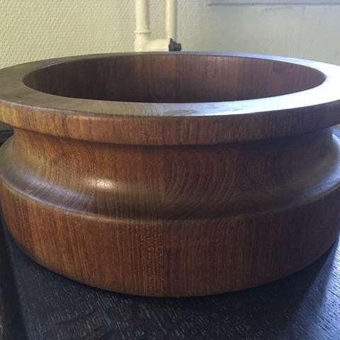 Andet, Salat- eller frugtskål i teak. Designet af Jens H. Quistgaard. Fremstillet hos Nissen i Langå. Højde 11,5 cm, diameter 27 cm