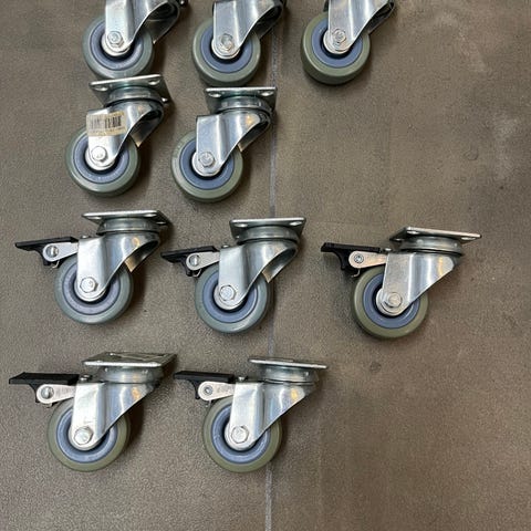 Sort drejehjul med gummiring og metalfælg