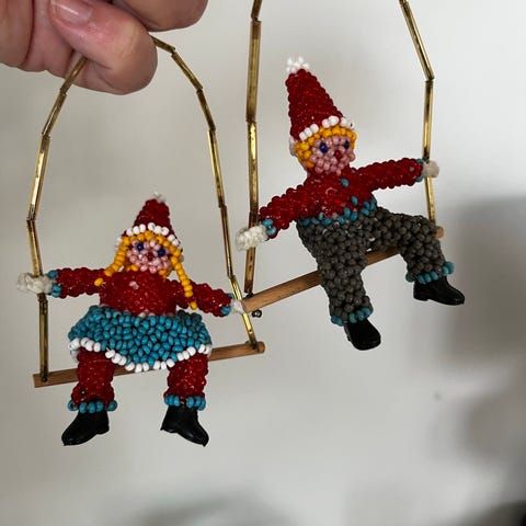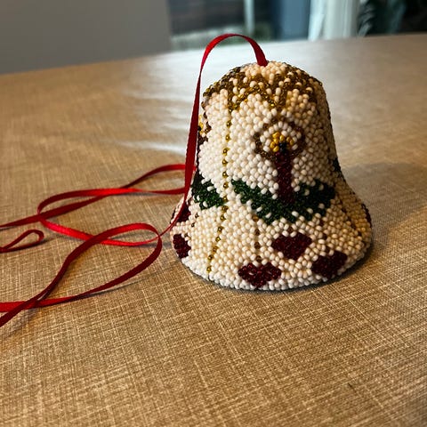 Perlejul retrojul perlekrans juleengel, Gammel fint Perlebroderi Julekrans Dørkrans perlesyning på krans rød hvide grønlandske perler retro i fin stand.