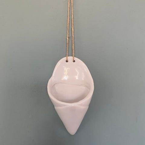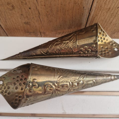 Stort, flot kræmmerhus i hvidler med mønstre/mørke nuancer. Hul i bagside til vægophæng. Umærket.