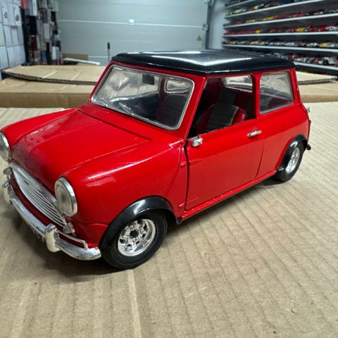 Modelbil, Mini Cooper 1960 1/16, skala 1:16 1/18, I original æske! Super flot og meget detaljeret modelbil i 1/16, passer perfekt til 1/18. Hel og intakt. Produceret i god kvalitet af Burago Italien
