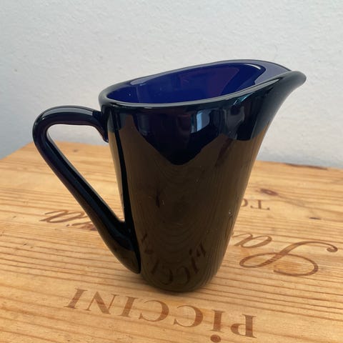 Gammel (formentlig antik), hyggelig kande i kobber eller kobberlegering. Hank kan bøjet ned på siden. Mrkt. ovenpå hank med krone, "Skultuna", "1807" og "2 L".