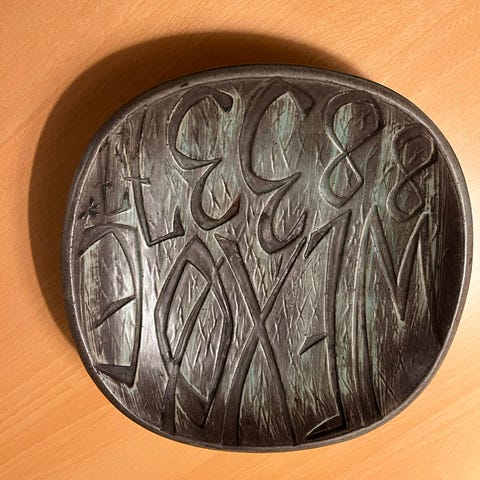 Stentøj, Massivt askebæger, brun/rød/blå