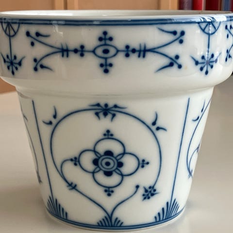 Natpotte i hvidglaseret porcelæn med grønt tryk fra Ditmar-Urbach i det daværende Tjekkoslovakiet, 1958 eller frem. Mærket med lidt utydeligt logo under bund.