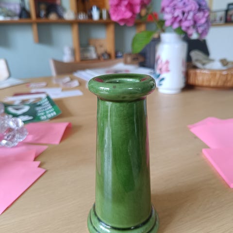 Højde er 52cm og diameter for oven er 16,5 & ned er 14,5 cm.