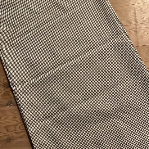 Meget Flot ubrugt lyseblå og hvid ternet dug med bort i kanten og i midten.