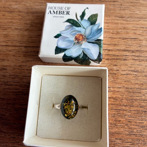 Fingerring, forgyldt, Actée, Meget smuk forgyldt ring med aventurin. Jeg får den desværre ikke brugt, så den fremstår helt ny.