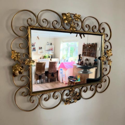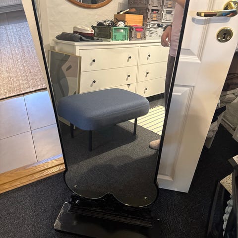 Spejl, Mega fedt retro spejl med velourbeklædt ramme. Måler ca 62x102 cm. Afhentes tæt ved 7130 Juelsminde.