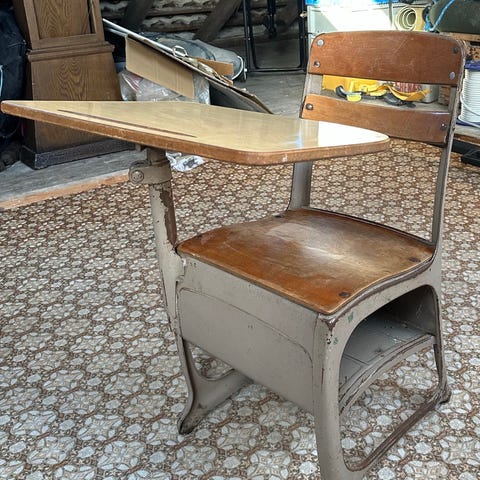 Skolepult skole pult skrivepult art deco antik , 100 år gl., Sjældent set kan indstilles så både store og små kan sidde godt med både ryg og fodstøtte se billederne.