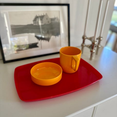 Retro plastikbakke, Orange Retro plastikbakke med sort bund.