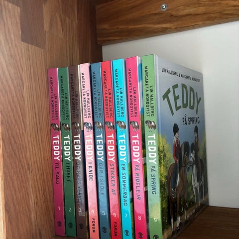 Teddy til salg (nr.1), Lin Hallberg og Margareta Nordqvist, Teddy nr.1 - Teddy til salg. Af Lin Hallberg og Margareta Nordqvist. Hardback. Hestebøger. Forlaget Forum, 2013. Flot eksemplar