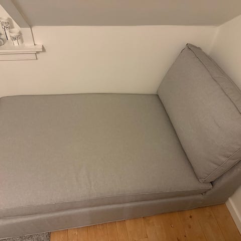 Chaiselong, Divan , chaiselong eller hvad man nu kalder den. Jeg har taget betrækket af. Så den står super fed rå med hør/ hessian. Selv ville jeg ha brugt den som den står. Må bare konstatere, at jeg ikke har pladsen. Derfor jeg skal af med den.