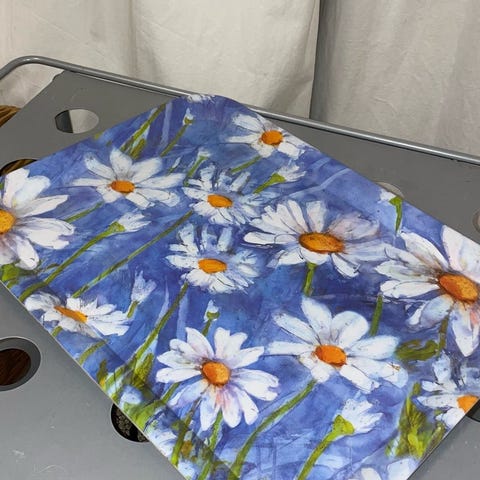 Bakke i plast med blomstermotiv