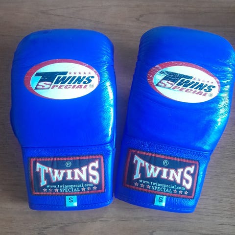 Bokseudstyr, Boksehandsker til thaiboksning, Twins Specials, str. 12oz, Lækre boksehandsker i okselæder. Brugte men i fin stand.