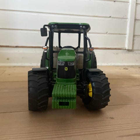 Traktor med halmballevogn, Bruder, Bruder Traktor, John Deer, med halmballepresser, incl. 1 stor balle. Lille sidespejl i førerside mangler. Giv et bud