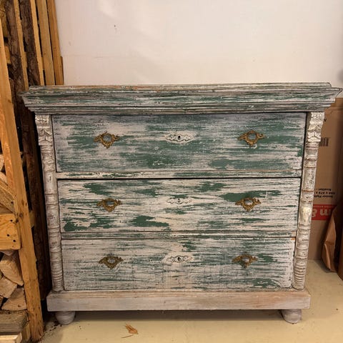 Retro møbel malet i forskellige Rosa kalkmalinger.