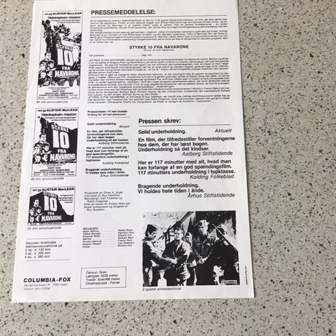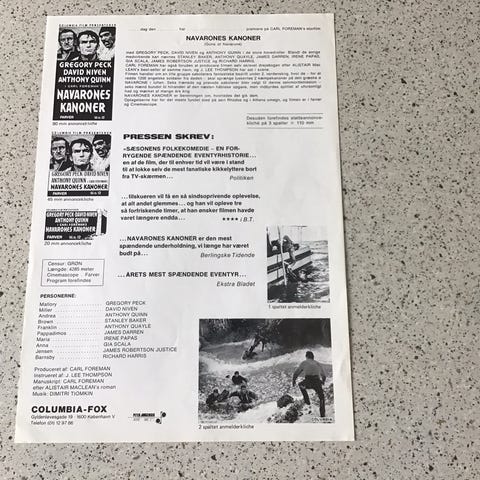 Andre samleobjekter, Orginal Films Plakat Navarones Kanoner