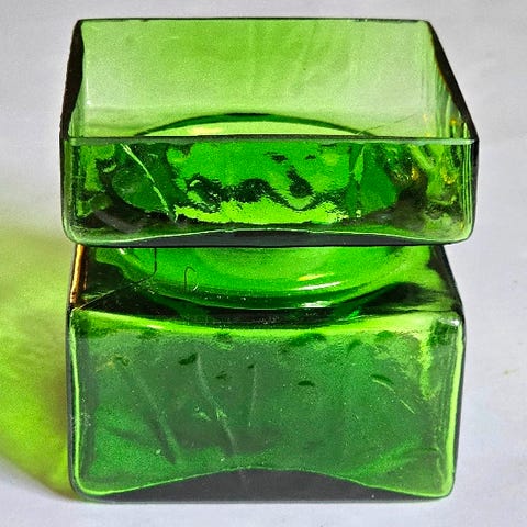 2 fine vaser i en lækker mørk mosgrøn, model # 1393 kaldet Pala, af Helena Tynell for Riihimäen (Riihimäki) Lasi (i dag Iittala), Finland, 1964