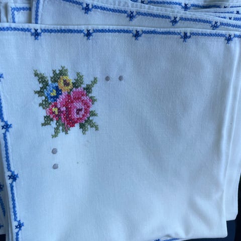 Vintage håndarbejde med aldersrelateret brugsspor.