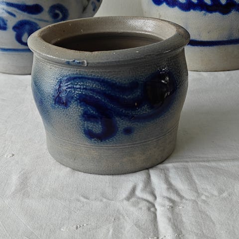 Keramik, Syltekrukke , Retro, Gammel blå skål / syltekrukke / leverpostejskål dia 12 højde 6 cm