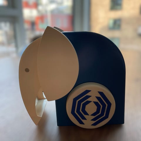 Elefanten er identisk med de legendariske Handelsbanken sparebøsser - bare i kæmpe udgave. Dette er dog ikke en sparebøsse.