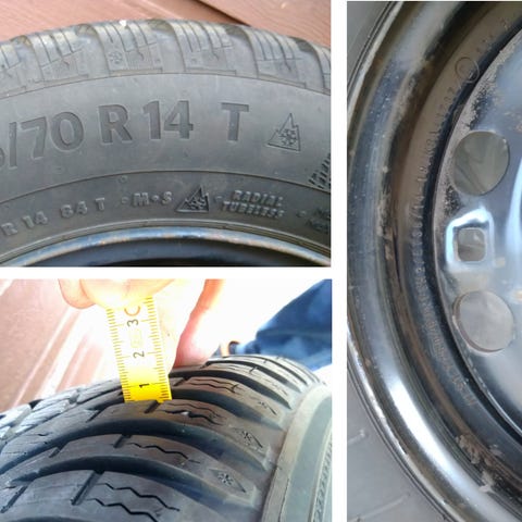 Stålfælge, 13", krydsmål 4 x 100, vinterdæk, fælge med dæk, Vinterdæk dæk med fælg og TPMS ventiler