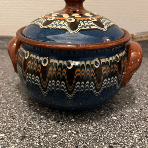 Er du på udkig efter en dekorativ og unik krukke til dit hjem? Denne ældre porcelæn krukke med stållåg er både farverig og smukt mønstret, hvilket gør den til et fantastisk dekorativt element.