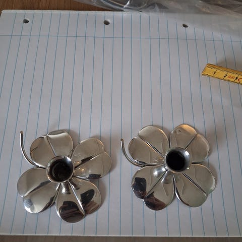 sølv lysestager og en sølv skål