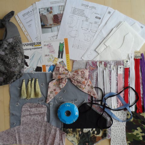 Sytøj, Diverse bånd, Diverse bånd, bl.a fra Rie Elise Larsen. Jeg har mange meter af hver. Kr. 3,- pr.meter. Løse blomster kr. 5,- pr.stk. Lysegrøn lynlås 25 cm, kr. 5,-