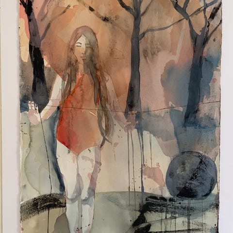 Akvarel, Amanda Zimmerlund, motiv: Portrætter/Figurer, stil: Abstrakt, b: 66 h: 80, Originalt unika værk 80x66 cm. af Amanda Zimmerlund