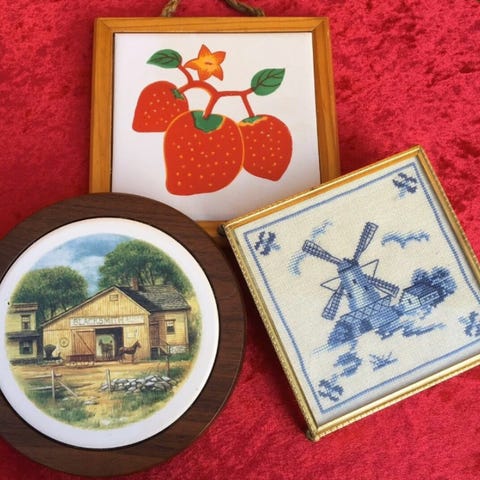 Foto 8 Særdeles skønne antikke håndmalede undersættere i træ - smørebrikker - skøn serveringsbakke - alt i flot stand