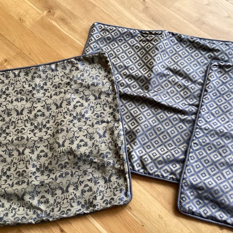 Sofapudebetræk i silke, Smukke pude betræk i silke, købt i magasin