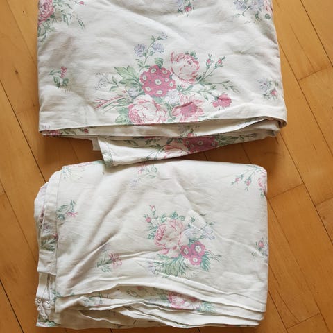 Stof, Vintage sengetøj med broderi, Flot vintage hvidt sengetøj / dynebetræk med broderi. Der er en enkelt plet på dynebetrækket (se billede 4), men det ses mest tæt på. 182 x 132 cm.