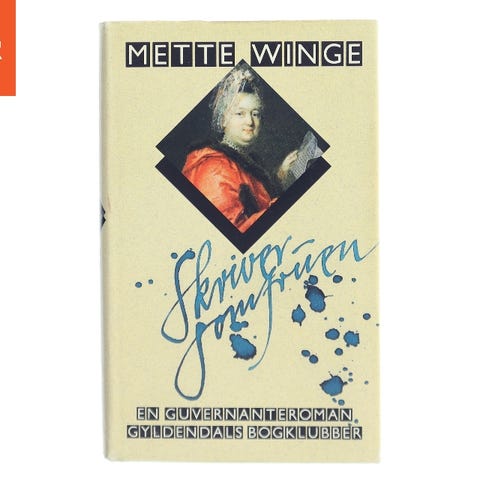 Skriverjomfruen, Mette Winge, genre: roman, Hardcover med smudsomslag.