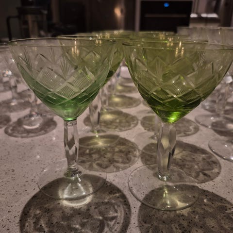 12 rød, 12 hvid, 12 port, 12 vand. Vinkaraffel og vandkande 100% i orden. Sælges samlet