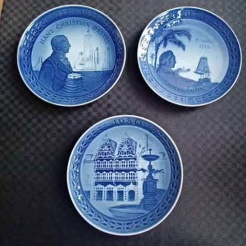 Denne Royale Copenhagen jubilæumsplatte 1978, er fremstillet i anledningen af James Cooks opdagelse af Hawaii i 1778..